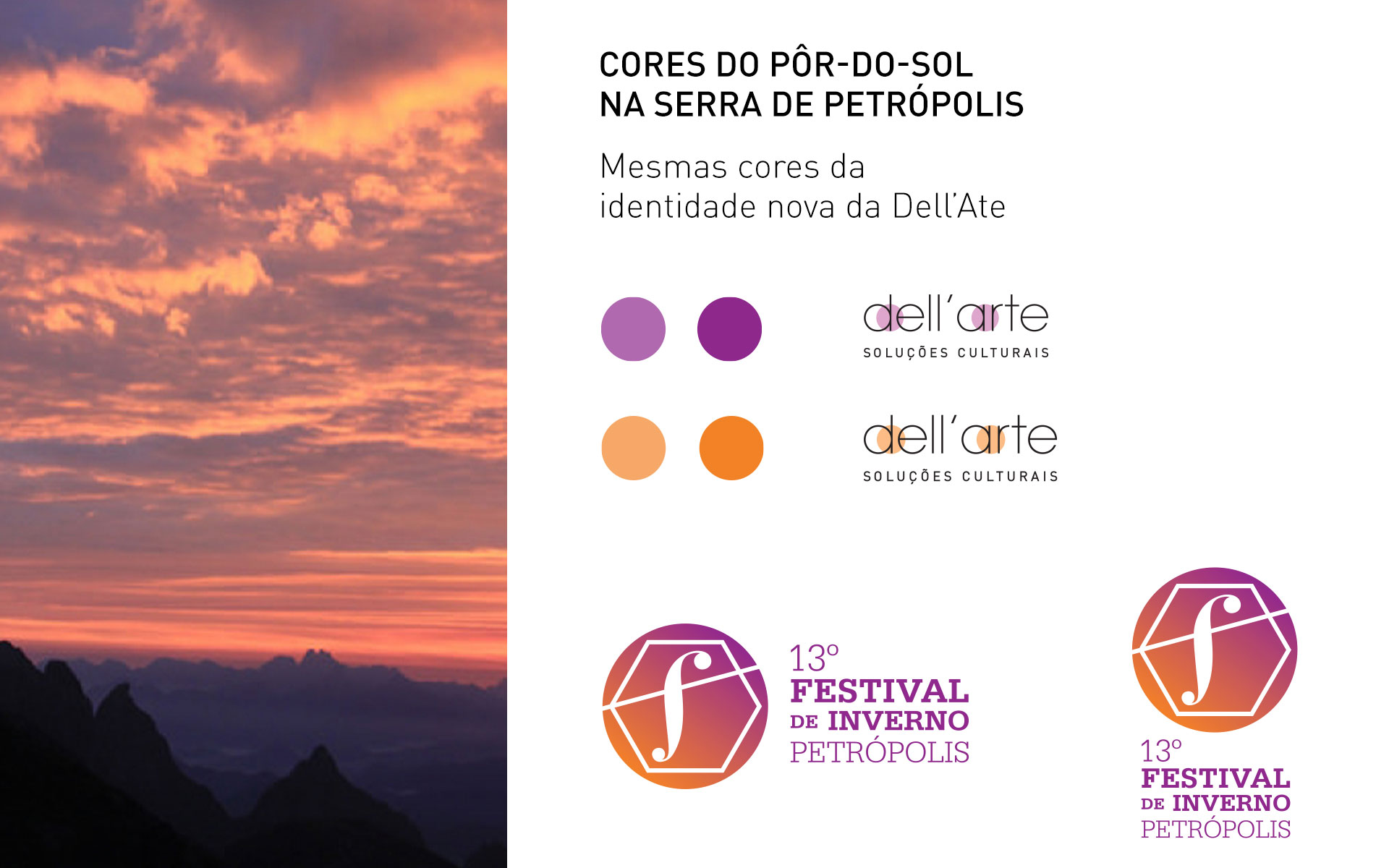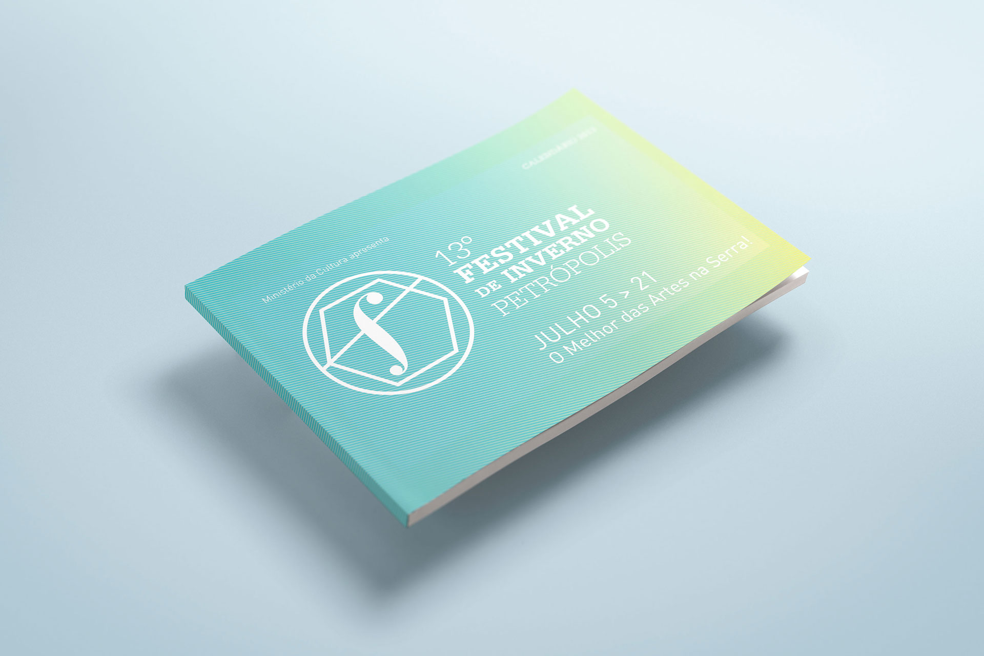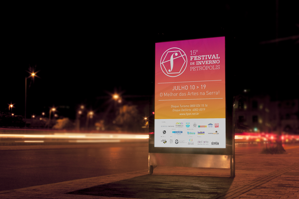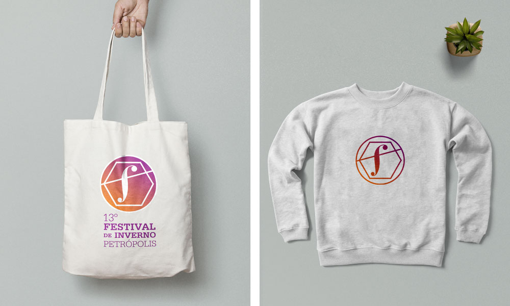 Em 2013, tive a oportunidade de modernizar a tradicional marca do festival do final dos anos 90. A solução foi criar um símbolo forte que passasse o virtuosismo, movimento e excelência presentes no festival. A inspiração para as cores utilizadas na marca foi a cor do céu ao nascer e pôr do sol da descida da serra de Petrópolis.
